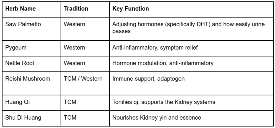 Some herbs have been researched for their influence on hormone pathways that are converted to DHT, which is one of the contributors to an enlarged prostate.