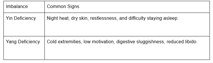 Yin Deficiency often shows up as night sweats, poor sleep, dry sensations, or feeling internally “wired” after dark, when the body should be cooling and settling.